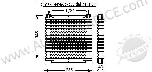 Chladič oleja UNIVERZÁL, D 285 x345x 45 mm - (max 18 bar), G1/2"" vnútorný závit (2x) Palivo: B/D Prevodovka: M/A AC: +/- Rozmer: 285 x 345 x 45